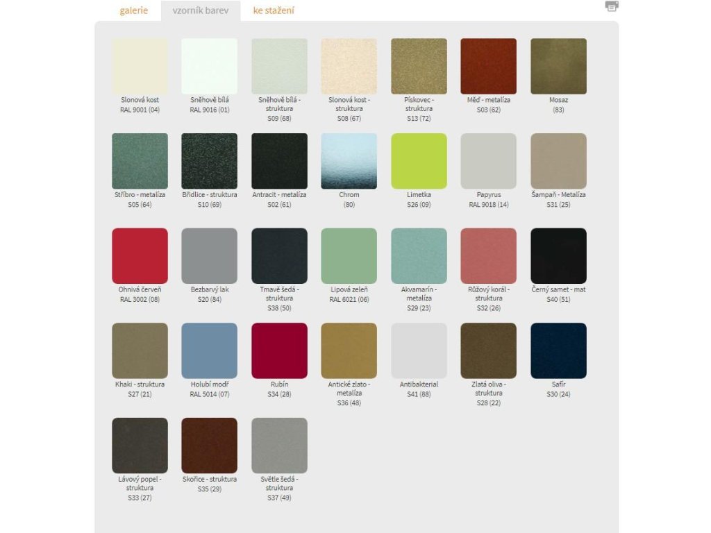 Barevné odstíny dle vzorníku RAL za příplatek. Je možné objednat si metalickou i strukturovanou barvu.